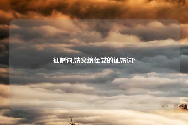 答,姑父给侄女的证婚词:祝福侄女新婚快乐!儿大当婚,女大当嫁。侄女到了法定的结婚年龄,姑父特此给侄女证婚。希望你所求皆得所愿并孝敬父母,幸福生活。