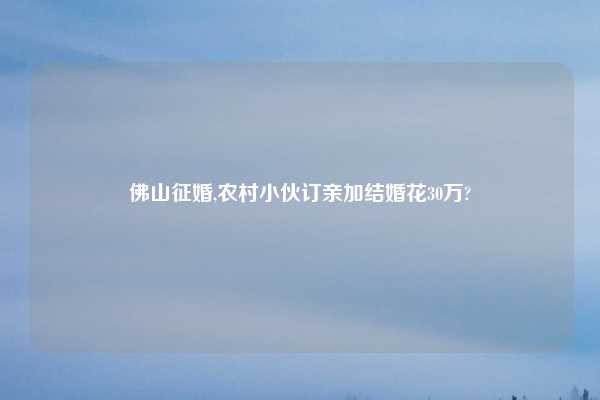 佛山征婚,农村小伙订亲加结婚花30万?
