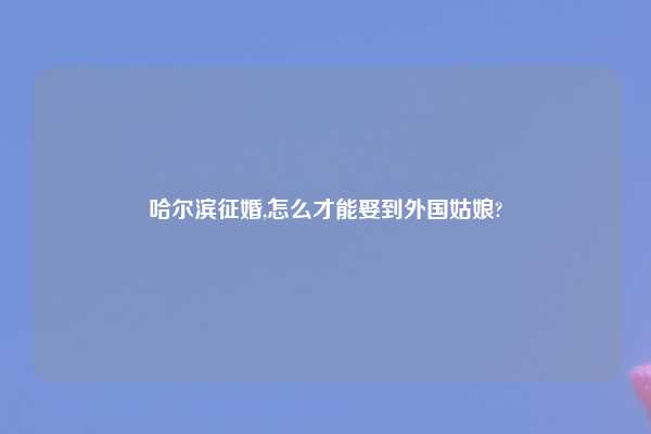 哈尔滨征婚,怎么才能娶到外国姑娘?