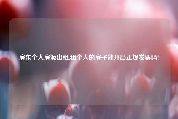 房东个人房源出租,租个人的房子能开出正规发票吗?