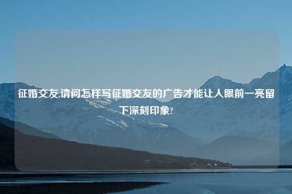 征婚交友,请问怎样写征婚交友的广告才能让人眼前一亮留下深刻印象?