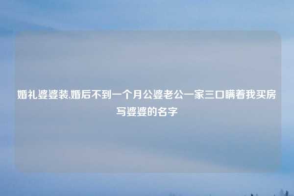婚礼婆婆装,婚后不到一个月公婆老公一家三口瞒着我买房写婆婆的名字?