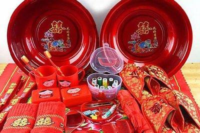 床品为了看起来喜庆,也是遗传古代婚礼的颜色,选择大红色的居多,其实如果不太喜欢红色也可选择深紫色粉色也可以。老令上说床上一定要有四床被子、四床褥子、两对枕头、两对靠垫。另外要注意的是,床品如果不是很平整可以用熨斗熨平,但切记一定不要蘸水清洗。