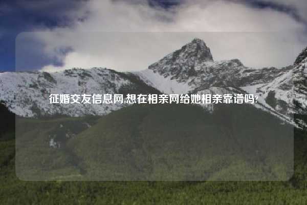 征婚交友信息网,想在相亲网给她相亲靠谱吗?