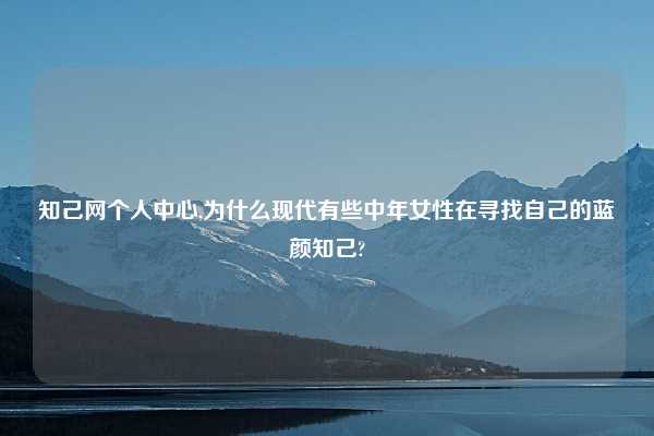 知己网个人中心,为什么现代有些中年女性在寻找自己的蓝颜知己?