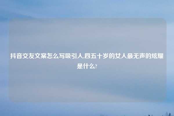 抖音交友文案怎么写吸引人,四五十岁的女人最无声的炫耀是什么?